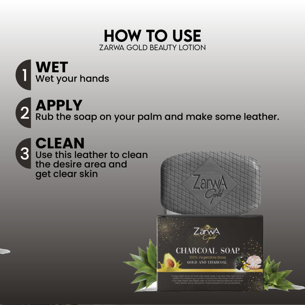 Lather Zarwa Charcoal Soap with water and gently massage onto your face and body. Rinse