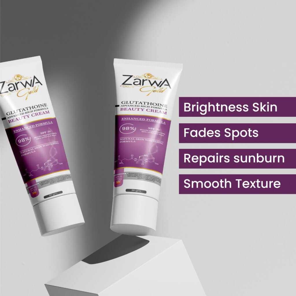 Zarwa Glutathione Beauty Cream is formulated with the powerful antioxidant