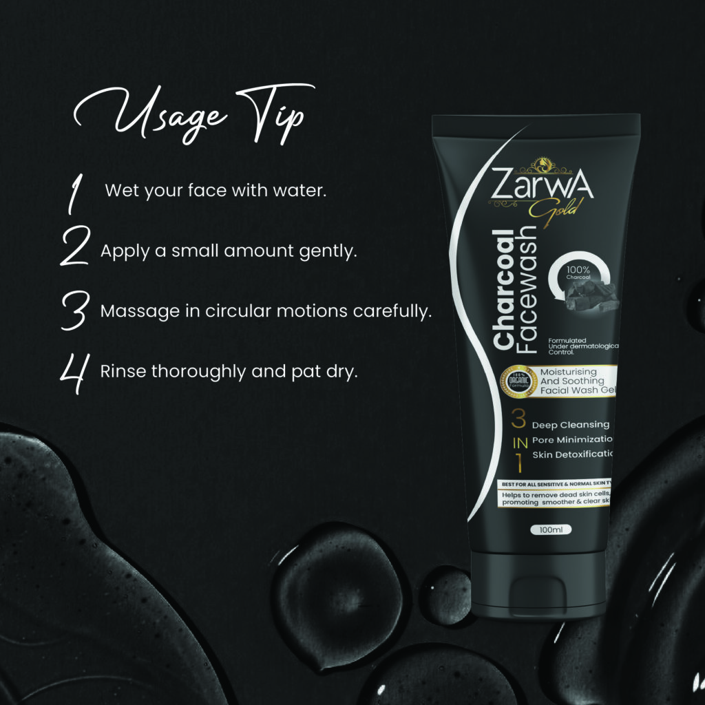 Wet your face with water. Apply a small amount and gently massage in circular motions,