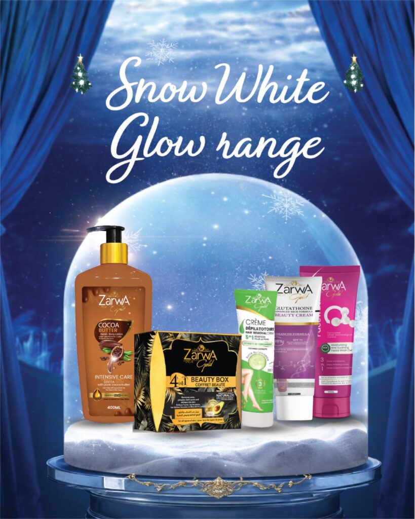 Reveal naturally glowing, smooth, and hydrated skin with the Zarwa Snow White Glow Range. A complete skincare set designed to brighten, moisturize, and enhance your natural glow from head to toe.